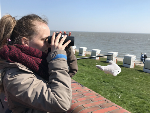 An beiden Wochenenden laden ehemalige Freiwilligendienstleistende unter dem Motto "Wal-Olympiade" zu interaktiven Mitmachaktionen rund um das Thema Schweinswale am Südstrand ein. Die Rangerin Annelie Hedden steht am Leuchtfeuer Eckwarderhörne für gemeinsames Whale-Watching und informative Gespräche zur Verfügung.